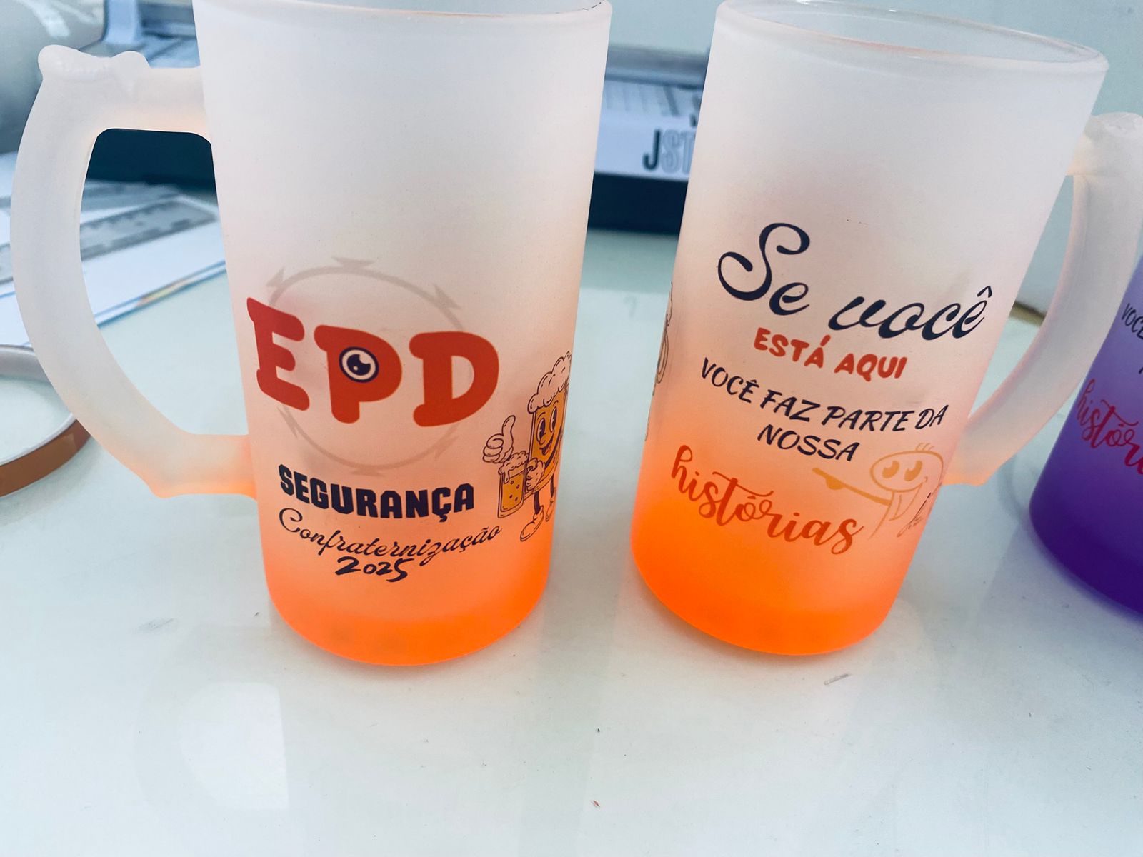 Caneca de chopp de vidro personalizada, ideal para presentear ou aproveitar momentos especiais.
