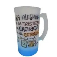 Caneca de vidro resistente, ideal para cerveja ou bebidas geladas. Personalização feita em sublimação ou DTF, com alta qualidade e durabilidade. Perfeita para presentes criativos e datas especiais.